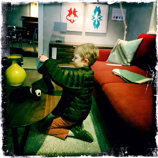 ...the furniture at Room and Board last weekend. He took it upon himself to go through all the searches and tell us what different colors everything came in. He really liked a cowhide ottoman and declared we should get it. When I asked him where we'd put it, he thought for a moment, then said "In the big room." There was very clearly an implied "duh" in his statement. He might have a bit of his father in him?